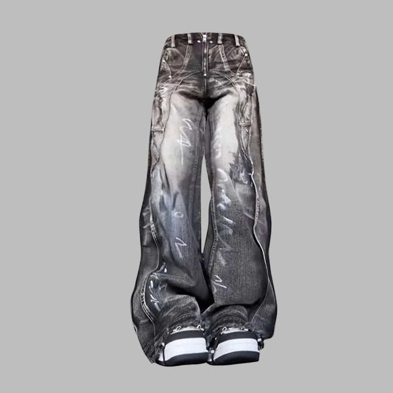 Oversize sorte jeans med grunge print brede unisex bukser