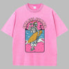 Oversize Rock T-shirt med Surfer Skelet Pink