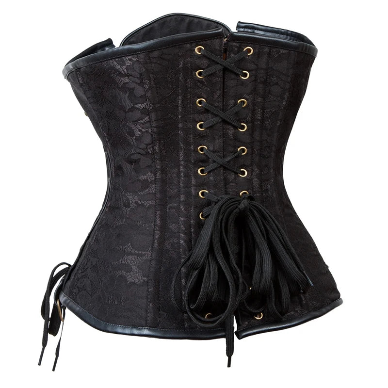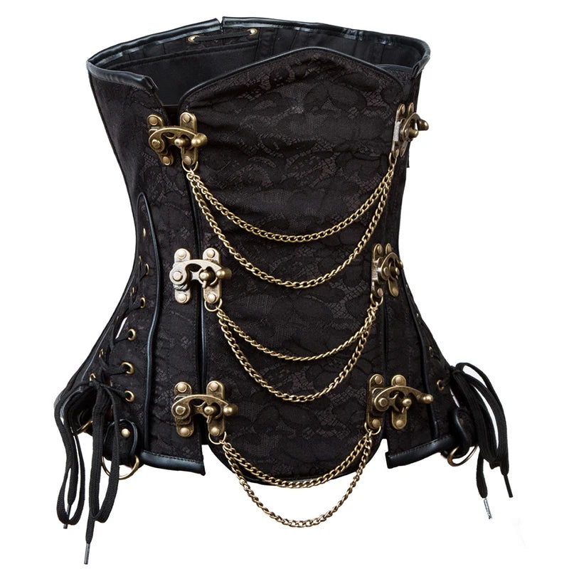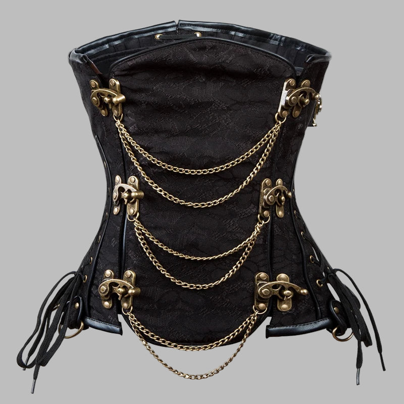 Punk gotisk korset sort med kæder gyldne spænder steampunk XXL