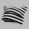 Punk Grunge Katteører Hue med Horn Stribet Sort-Hvid