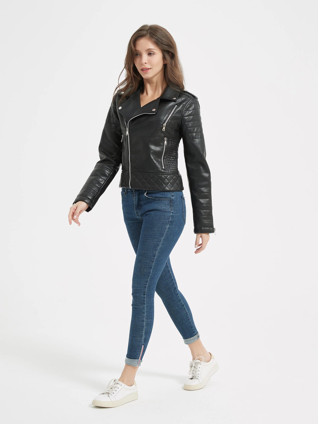 Punk Læderjakke med Quiltede Indsatser Se muligheder