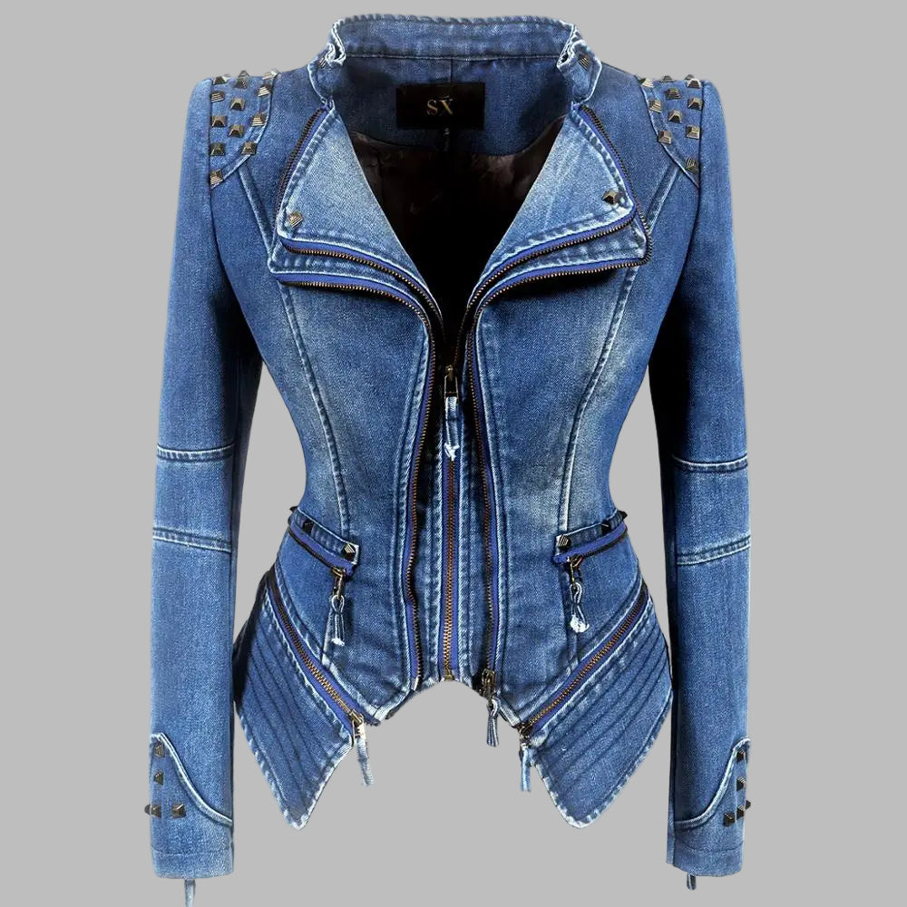 Punk Rock Blå Denimjakke med Nitter Se muligheder