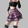 Punk Rock Grunge Nederdel i Ternet Mønster med Blondekant