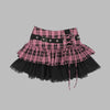 Punk Rock Grunge Nederdel i Ternet Mønster med Blondekant