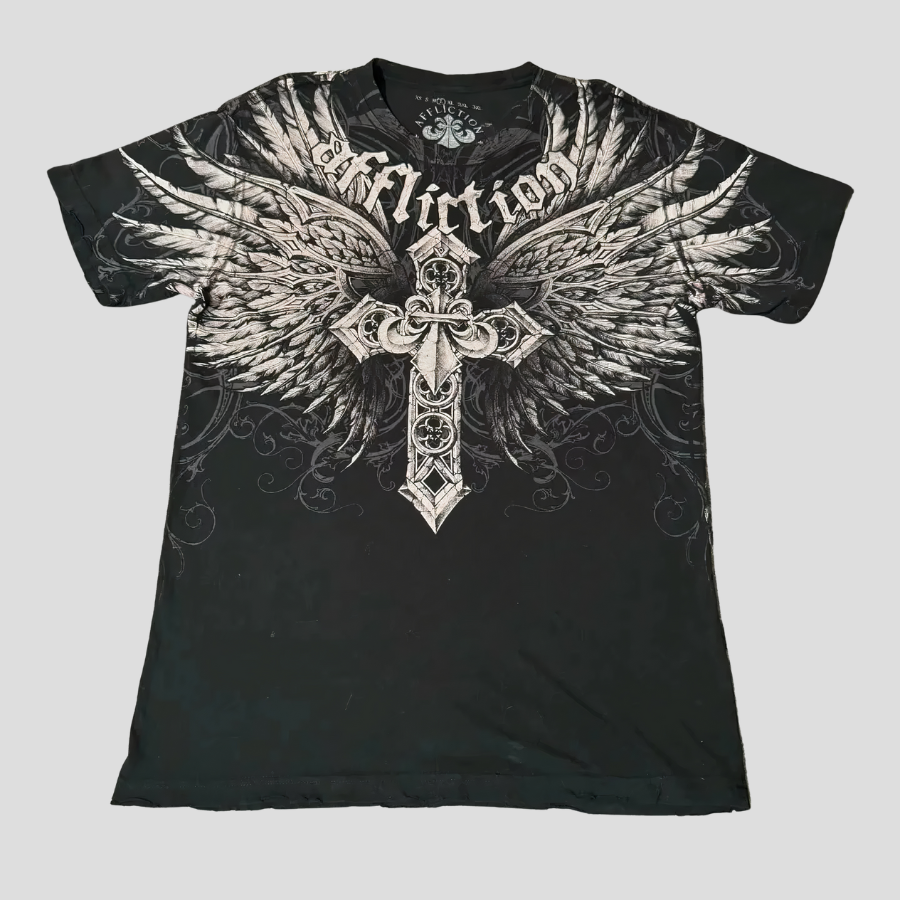 Punk Rock T-shirt med Vinger og Grunge Kors