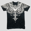 Punk T-shirt med Grunge, Kranier og Vinget Kors