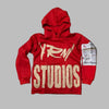 Rød hættetrøje til børn i heavy metal-stil fra YRN Studios