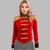 Rød militær rockjakke med gyldne applikationer og frynser Se muligheder