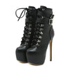 - Hæl: tynd, meget høj – cirka 16,5 cm
