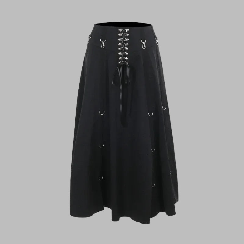 Sort asymmetrisk gotisk lang sort nederdel med korset og flæser