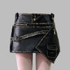 Asymmetrisk sort steampunk-nederdel i læder med stropper og spænder
