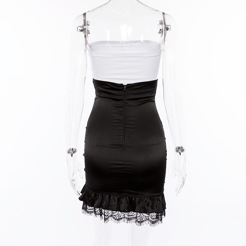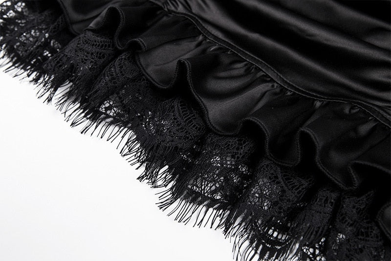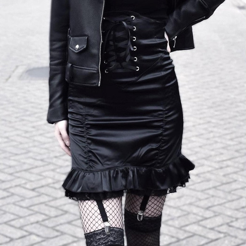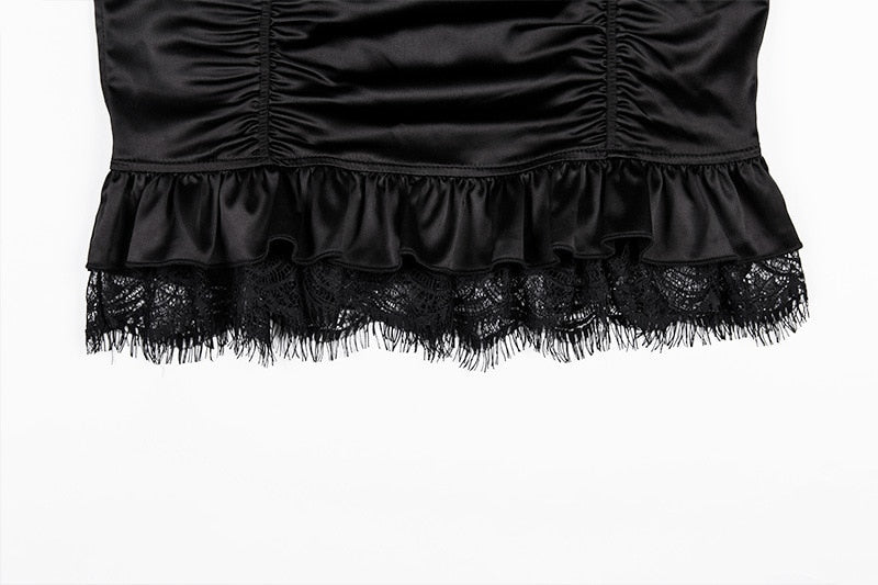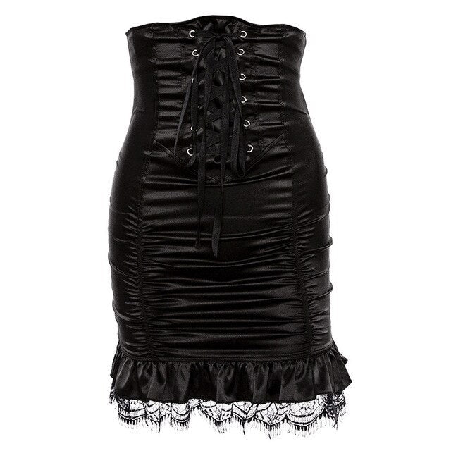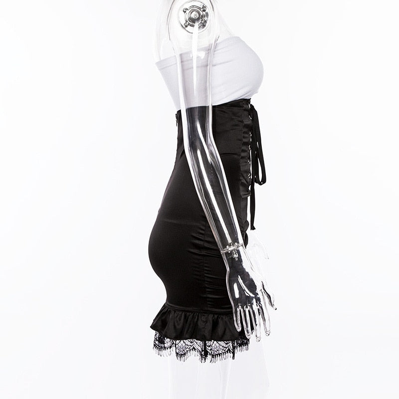 • Kort nederdel med tætsiddende snit og blonder: mere romantik
