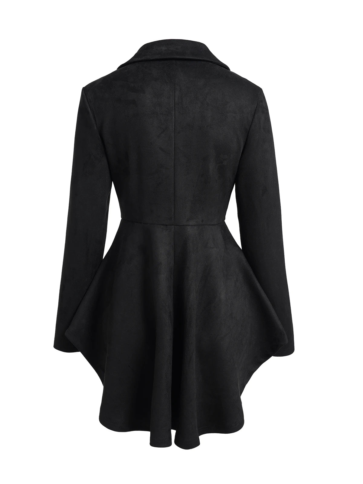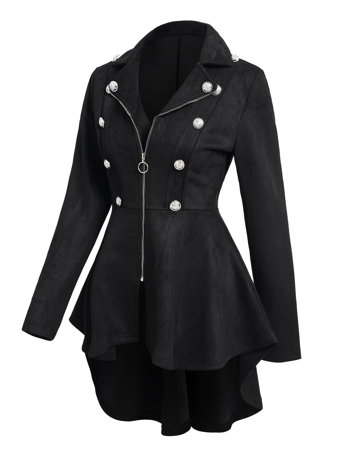 Sort gotisk damefrakke med knapper og lynlås, sort, XXL