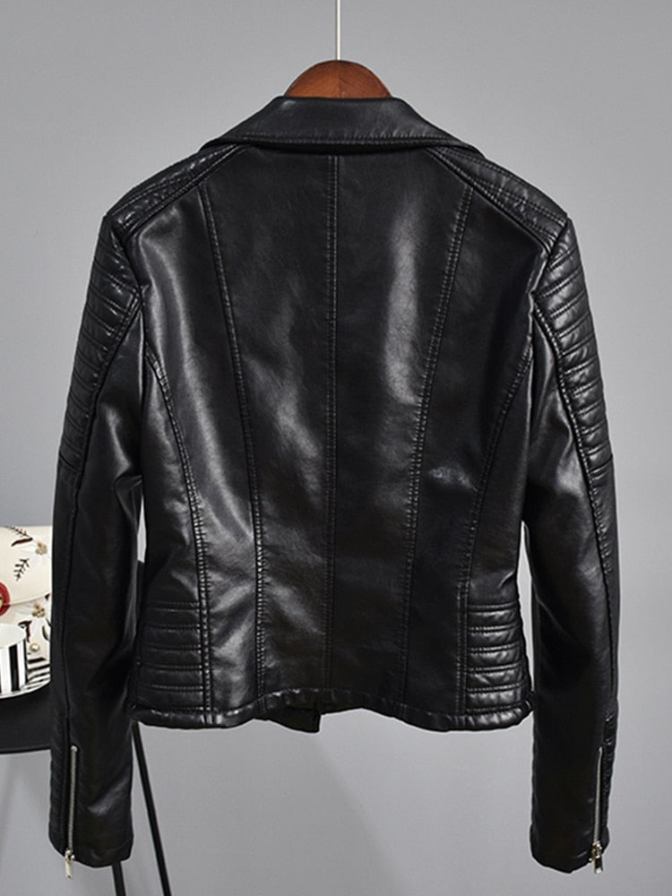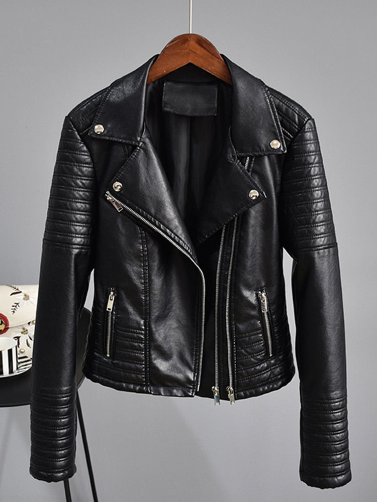 • Komfortabel og Elegant: Fremstillet af materialer af høj kvalitet som PVC, kunstlæder og PU, kombinerer denne jakke komfort og elegance. Dens komplekse krave og lynlås tilbyder beskyttelse mod vejret, samtidig med at den tilføjer et strejf af mørk charme.