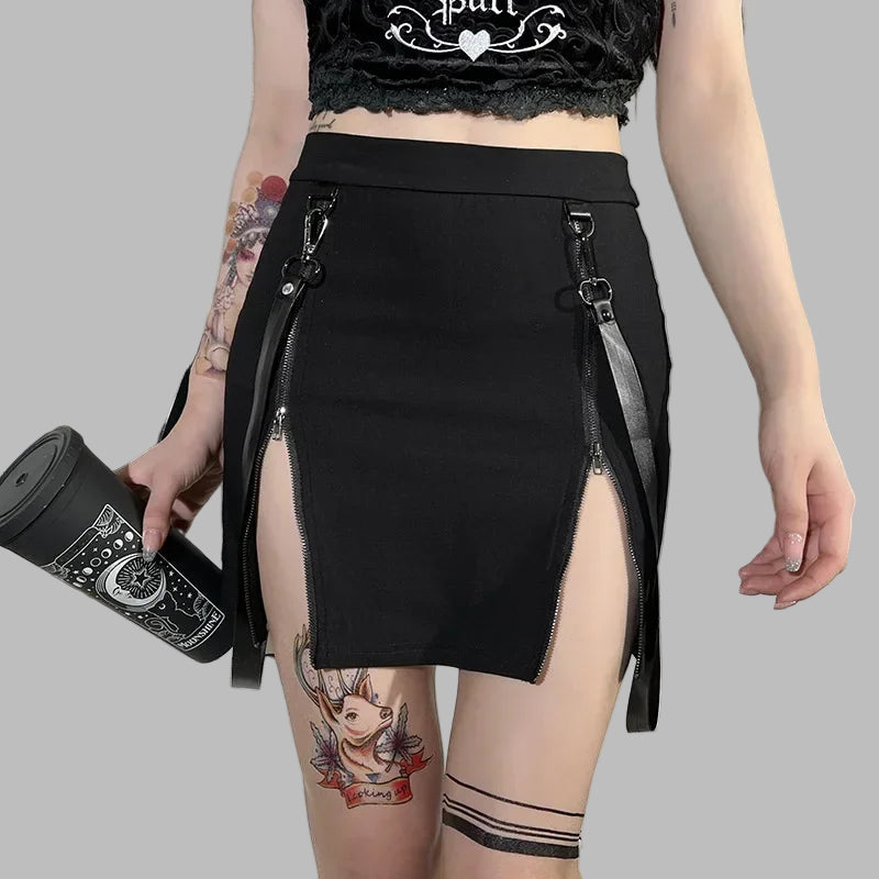 Sort gotisk sort miniskirt med lynlåse og stropper