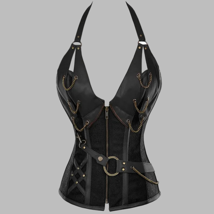 Sort gotisk punkkorset med kæder og læderdetaljer