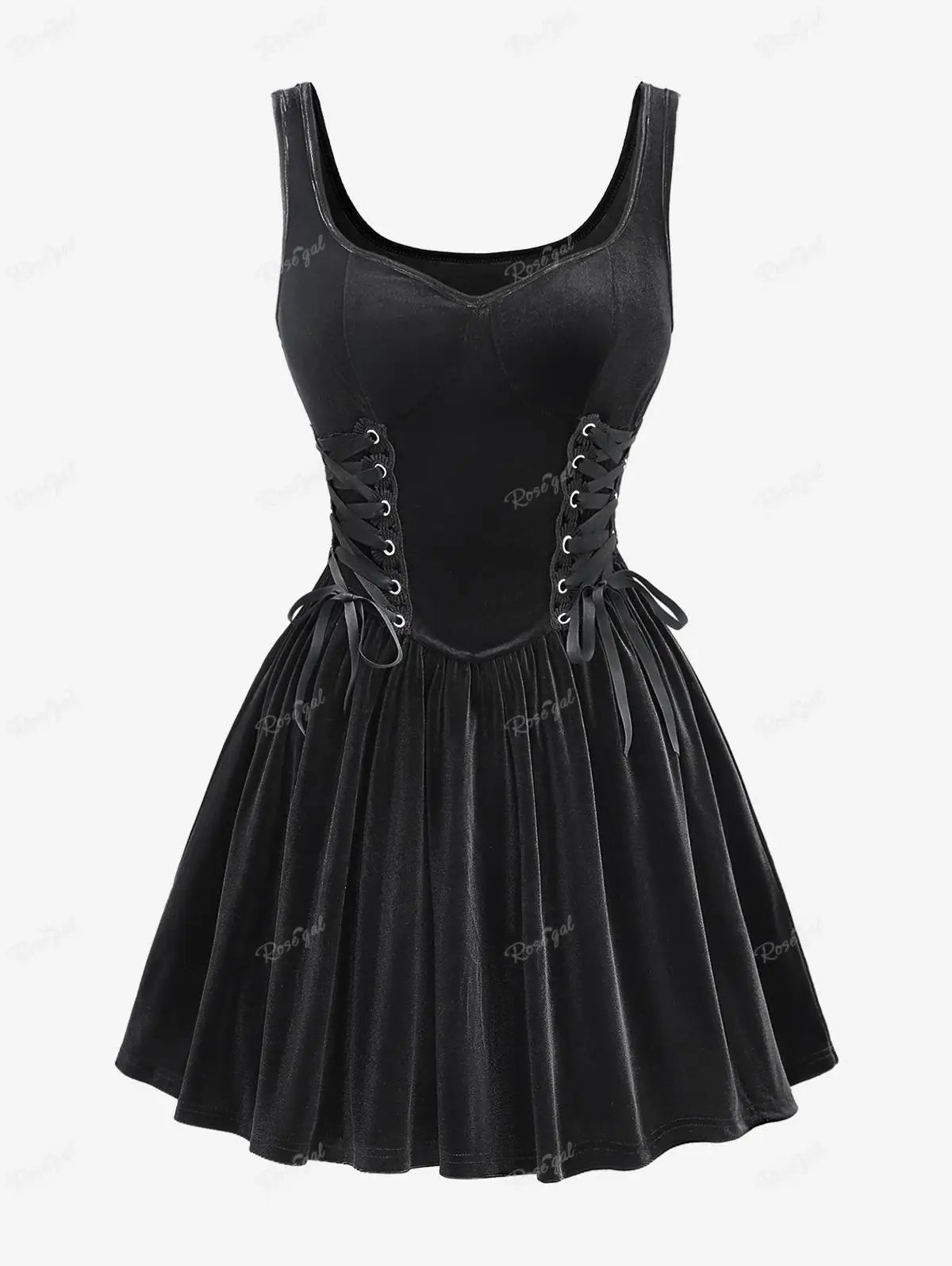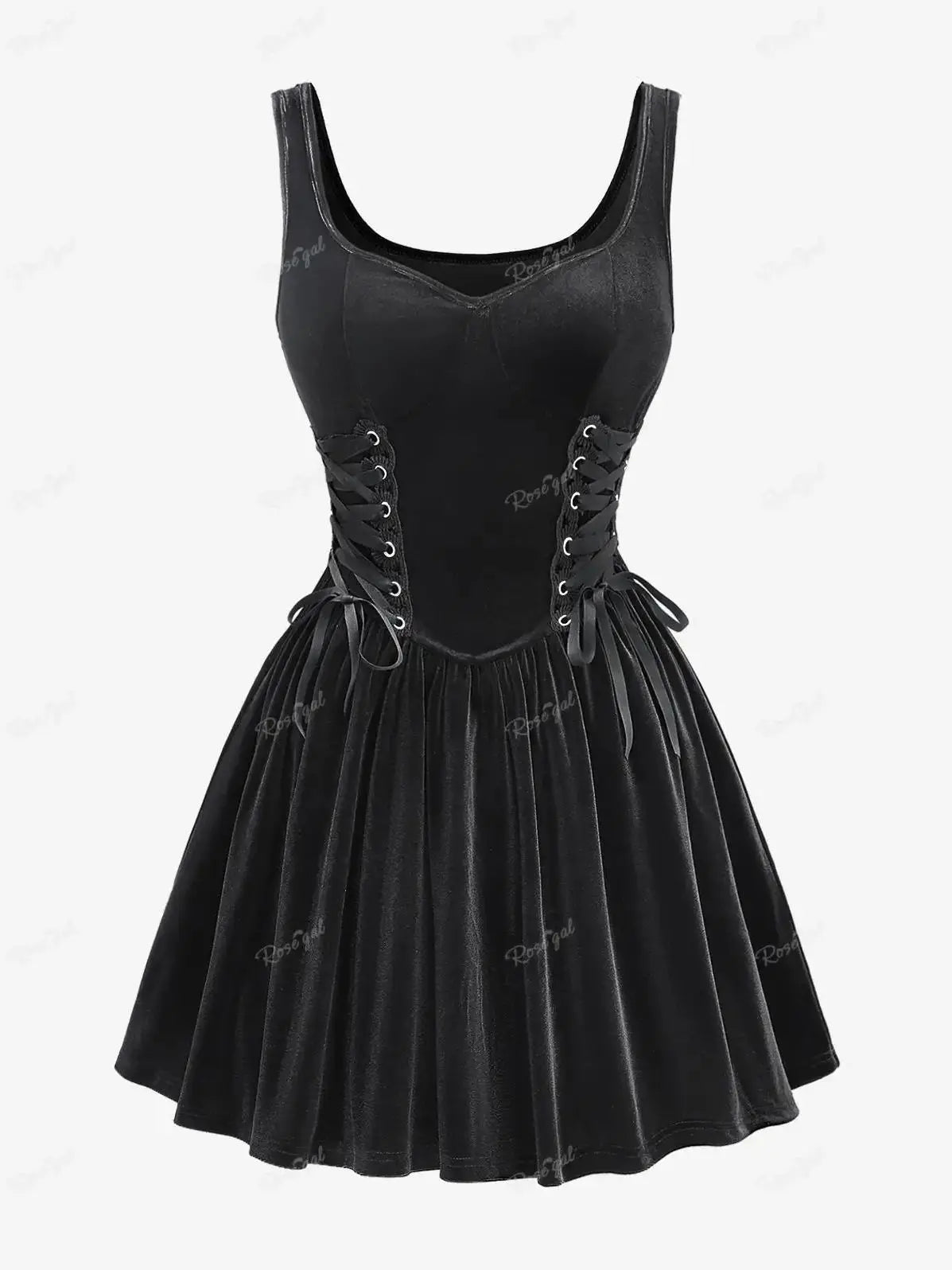 Sort gotisk Rock kjole med korset og vid nederdel Se muligheder