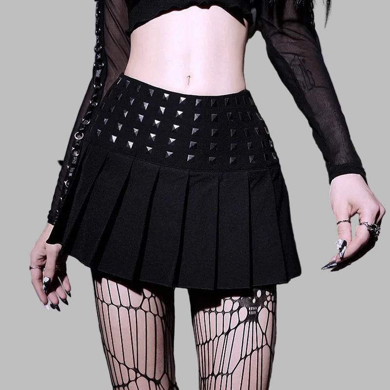 Sort Grunge Plisseret Mini Sort med Nitter til Kvinder