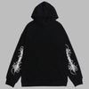 Sort hættetrøje i metalstil med hvide mønstre på ærmerne