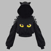 Sort hættetrøje i punkstil med horn, gule øjne og snøring Se muligheder