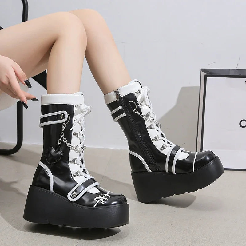 - Stil: punk ankelstøvler til midt på læggen med side lynlås