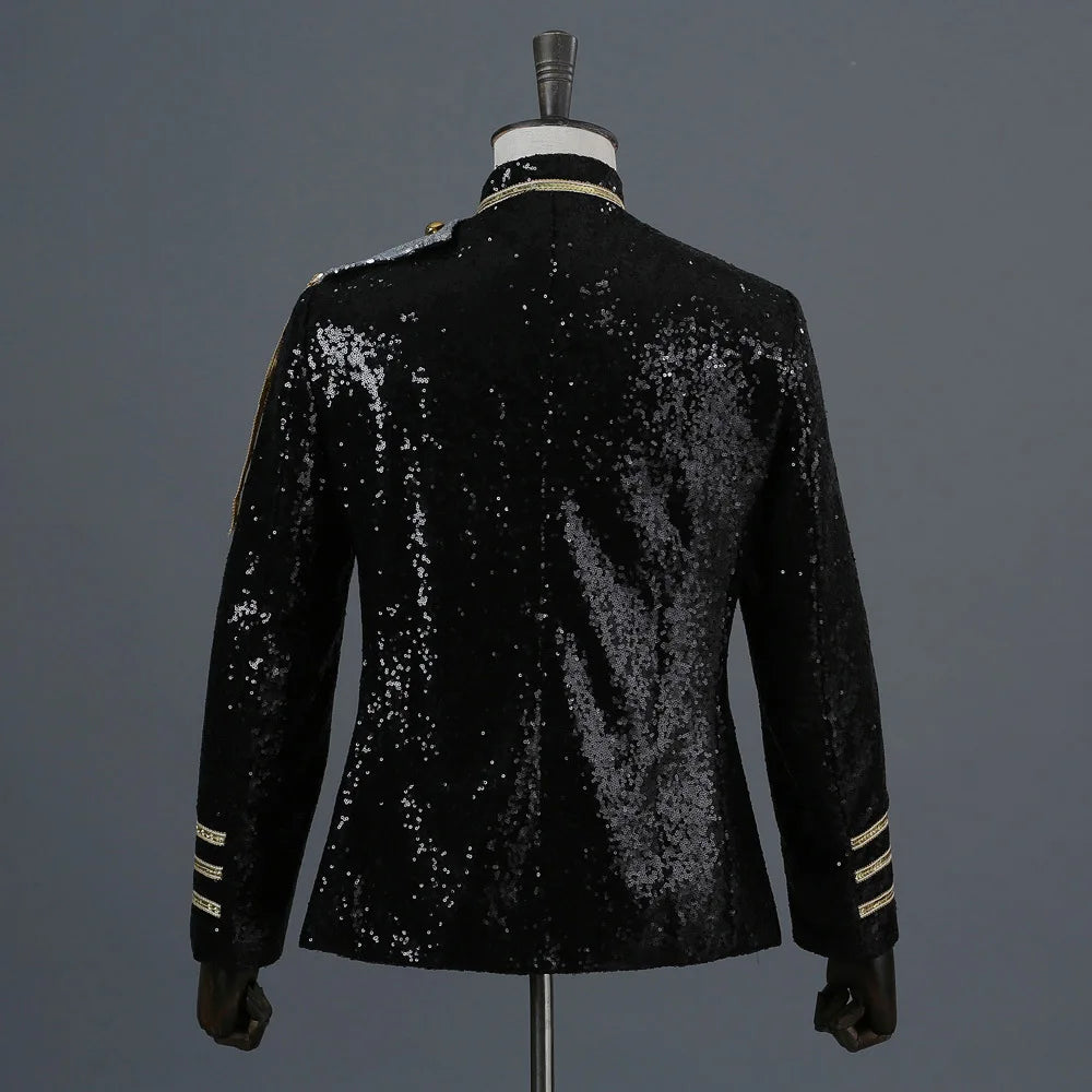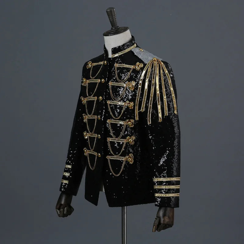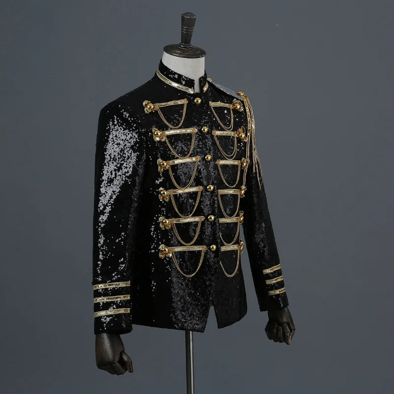 Sort jakke med kæder og gulddetaljer i metal stil