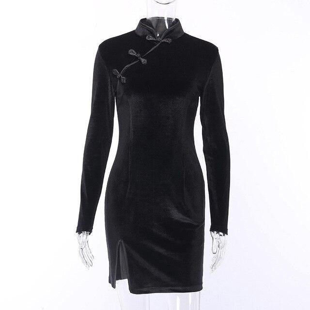 Sort kimono kjole med lange ærmer