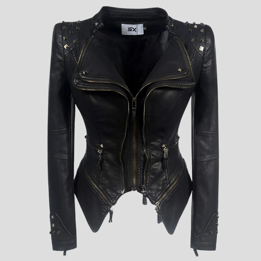 Sort læderjakke med nitter i punk goth metal stil Se muligheder