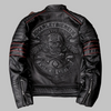 Sort læderjakke til mænd i gotisk stil med kraniebroderi 6XL