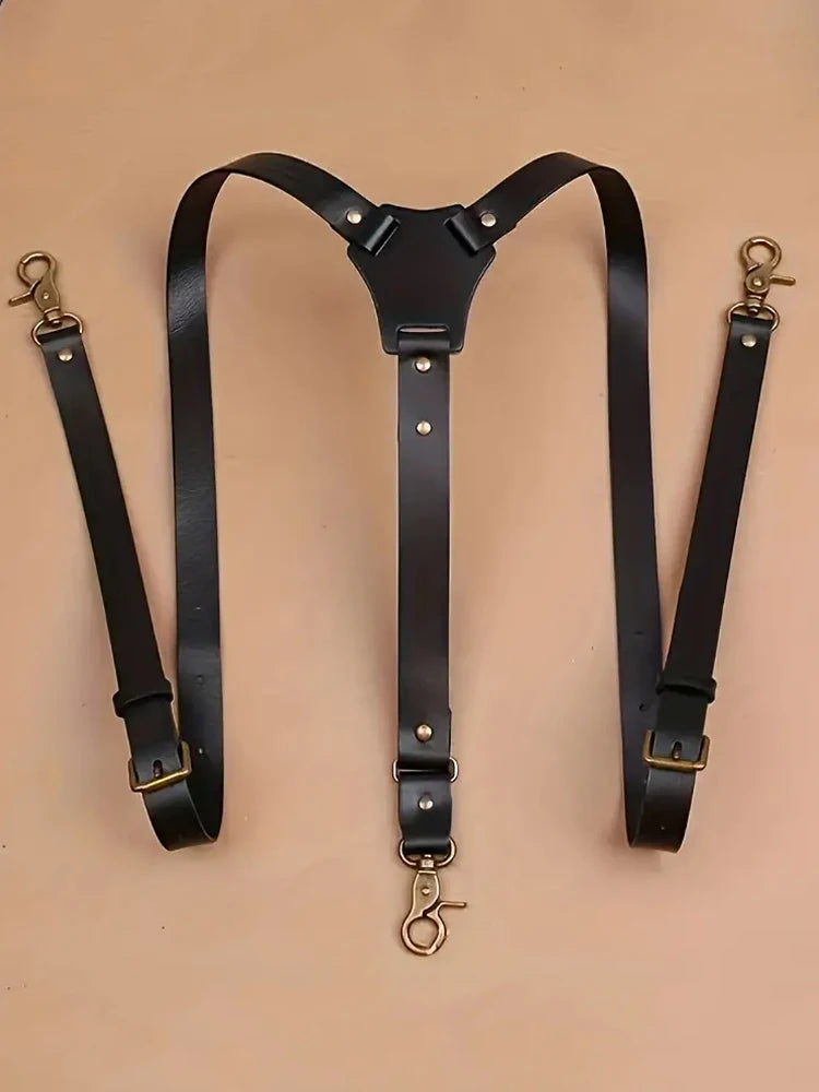 Sort lædersele med metal, justerbare stropper og spænder i sort