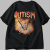 Sort Metal Autism T-shirt med kranium og ild i oversize
