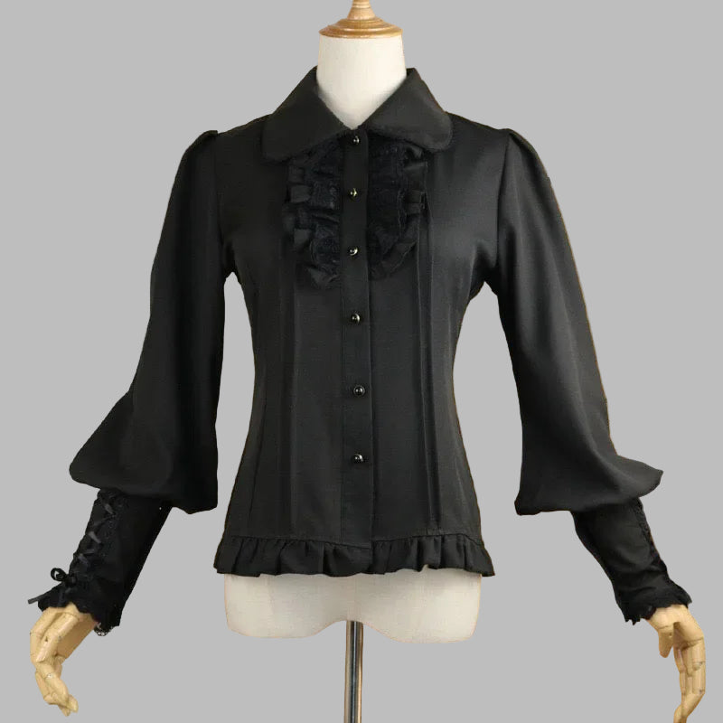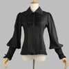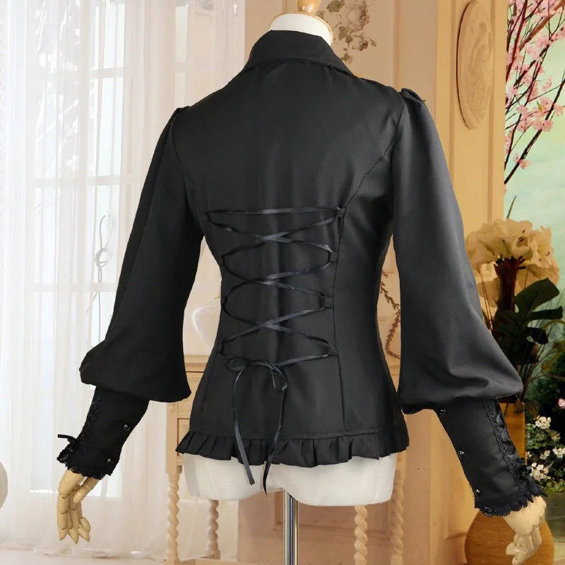 Sort Metalbluse med Flæser og Snørelukning på Ærmerne