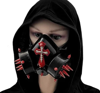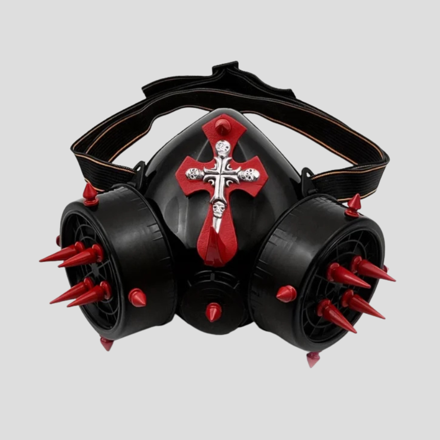 Sort metalmaske med rødt kors og nitter Se muligheder