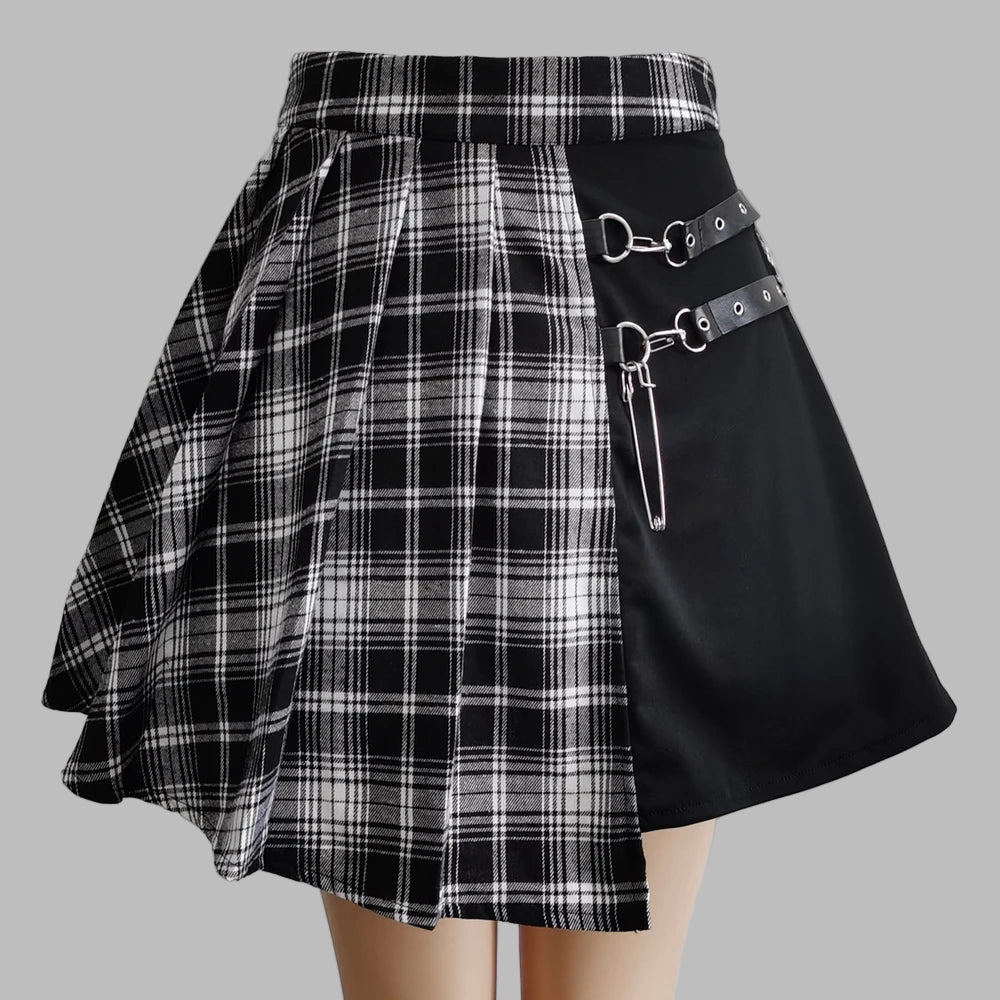 Sort og hvid grunge punk rock nederdel med bælter og nitter