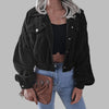 Sort Oversize Grunge Fløjl Jakke med Lommer