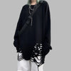 Sort oversized grunge punk rock sweatshirt med huller XXL