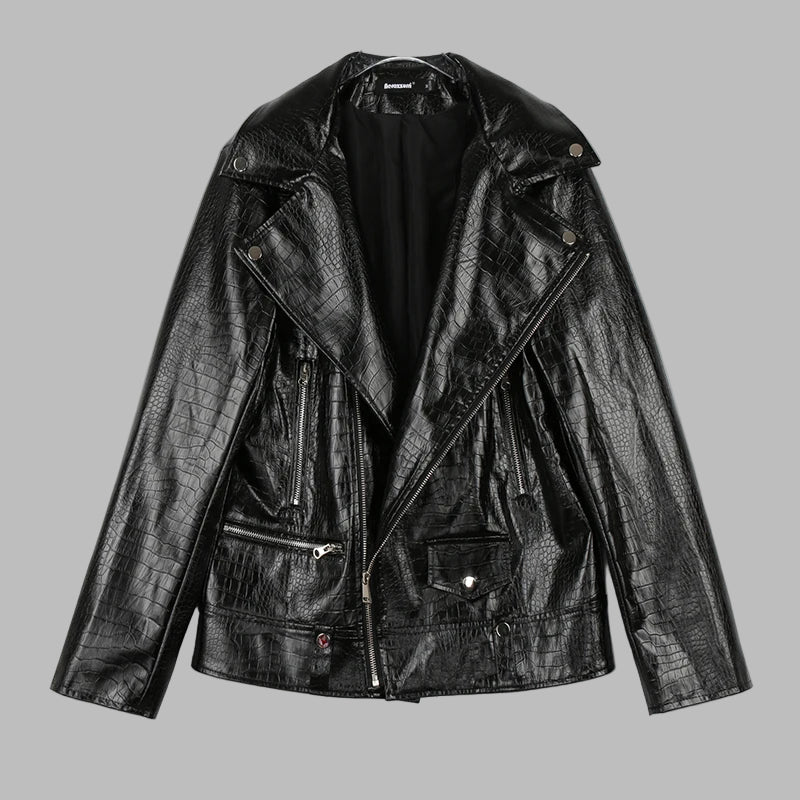 Sort skindjakke i goth metal punk stil