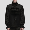 Czarna Koszula Metal z Koronkowymi Żabotami i Mankietami