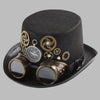 Sort steampunkhat med kompas, tandhjul og briller
