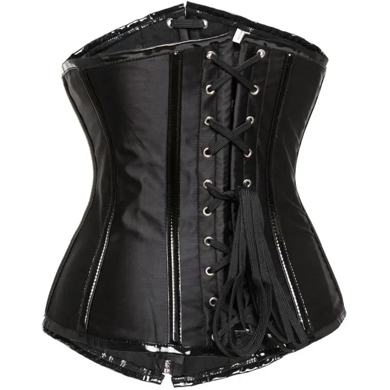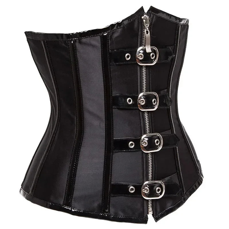 Sort steampunk-korset med metalspænder – høj talje