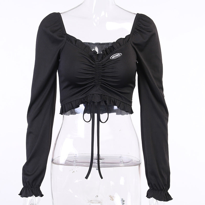 • Funktioner: Lange ærmer, Sexet, Snørelukning, Crop Top, Rynker