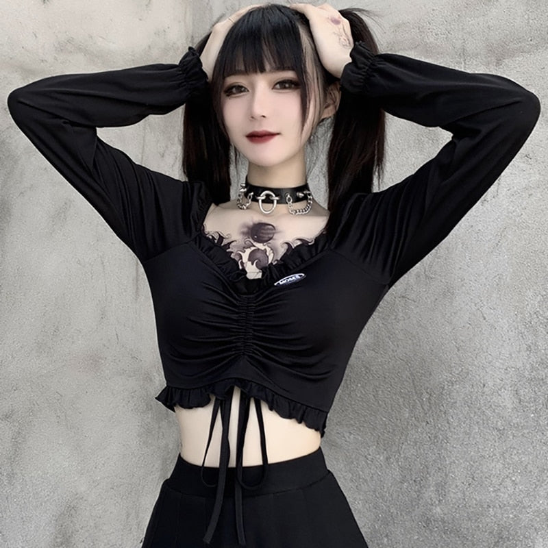 Hæv dit mode-niveau med vores udsøgte Gotiske Top - en blanding af forførende stil og hypnotiserende udseende, der helt sikkert vil tiltrække opmærksomhed. Designet til at omfavne din individualitet, udstråler denne top en perfekt blanding af gotisk charme og moderne elegance. Uanset om du spadserer gennem efterårsblade eller deltager i vinterfester, er denne top dit ultimative garderobeelement.