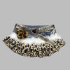 Steampunk denimnederdel med leopardmønster og pelsdetaljer