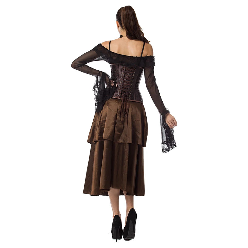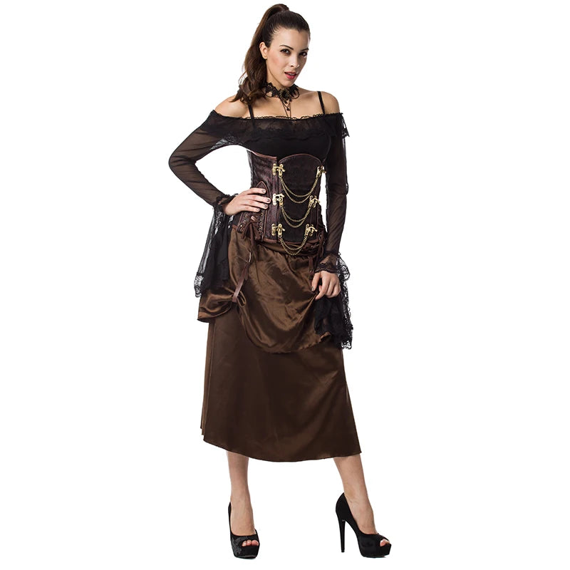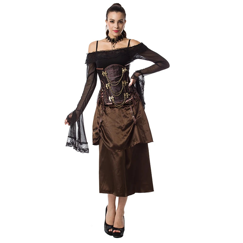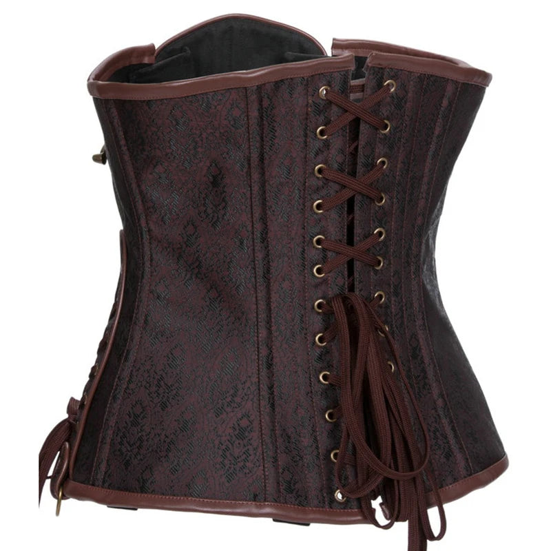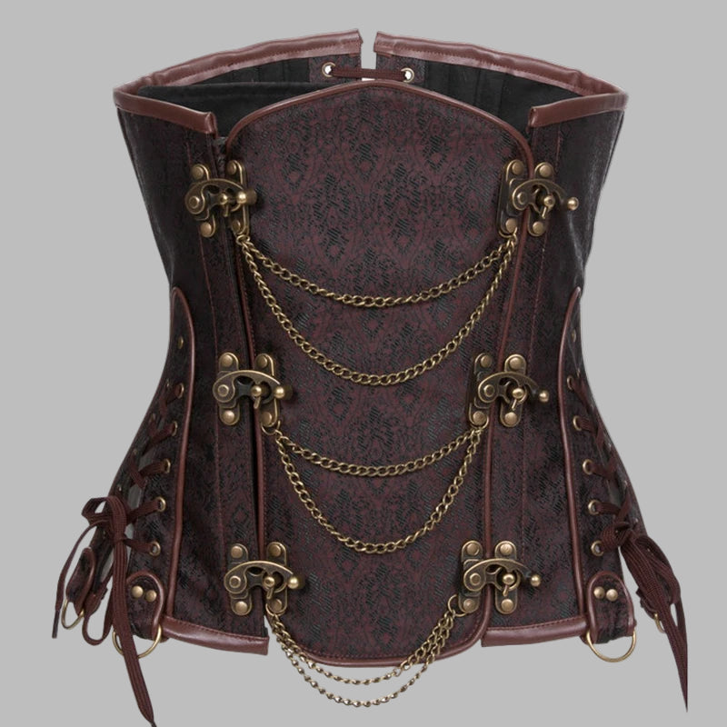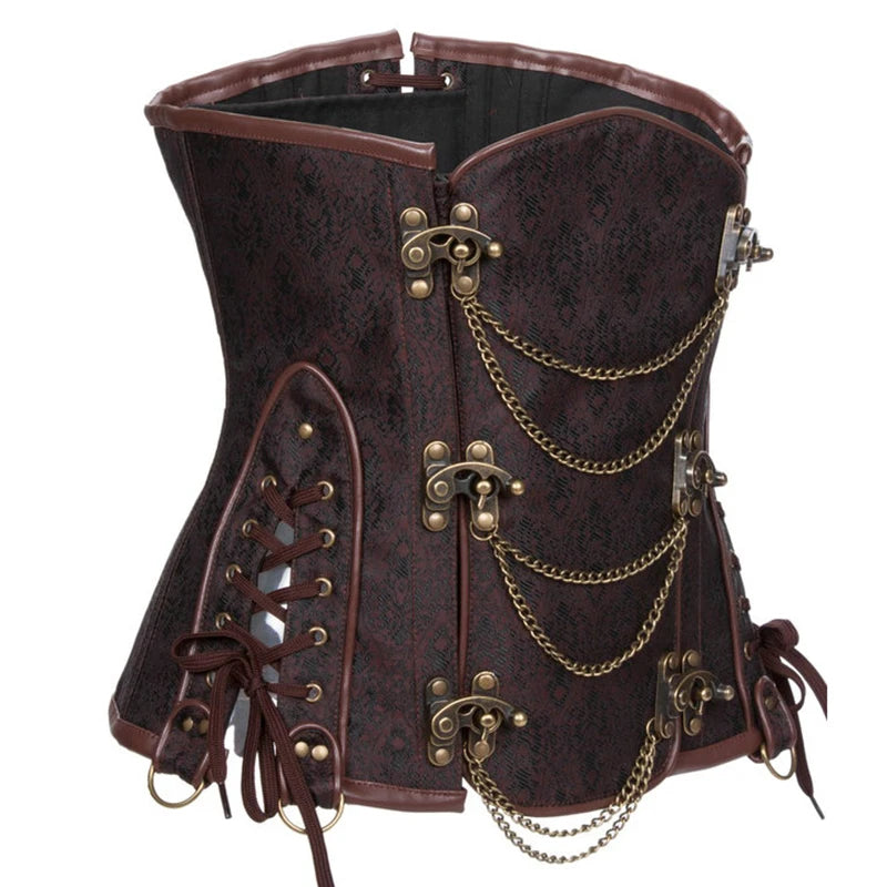 Steampunk gotisk brun korset med kæder og messing spænder XXL