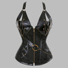 Steampunk gotisk korset med kæder og lynlåse metalbeslag sort