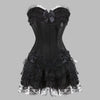 Steampunk gotisk korset sort med sløjfer og blondeflæse 6XL