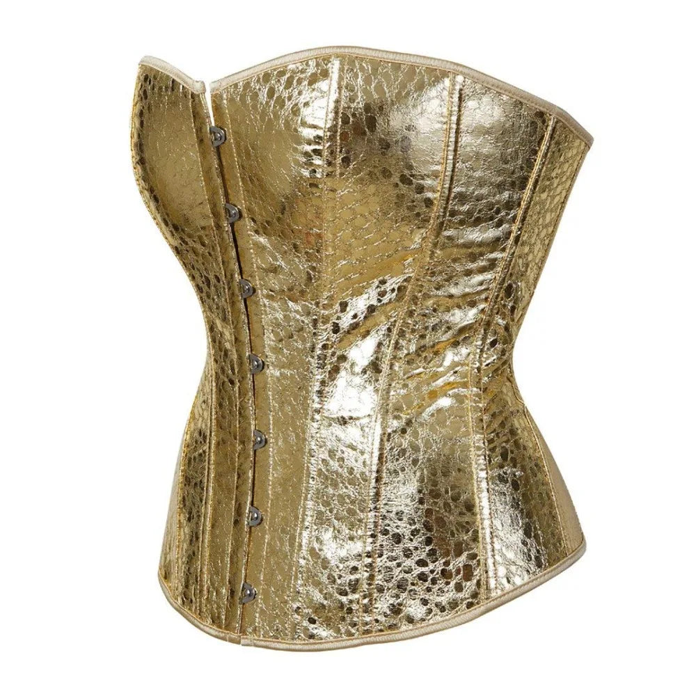 Steampunk Korset Guld Metallic med Slangeskindsmønster