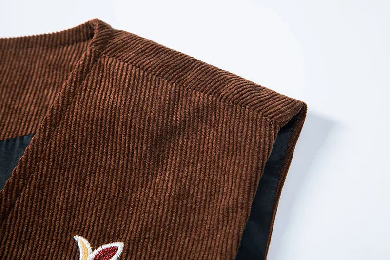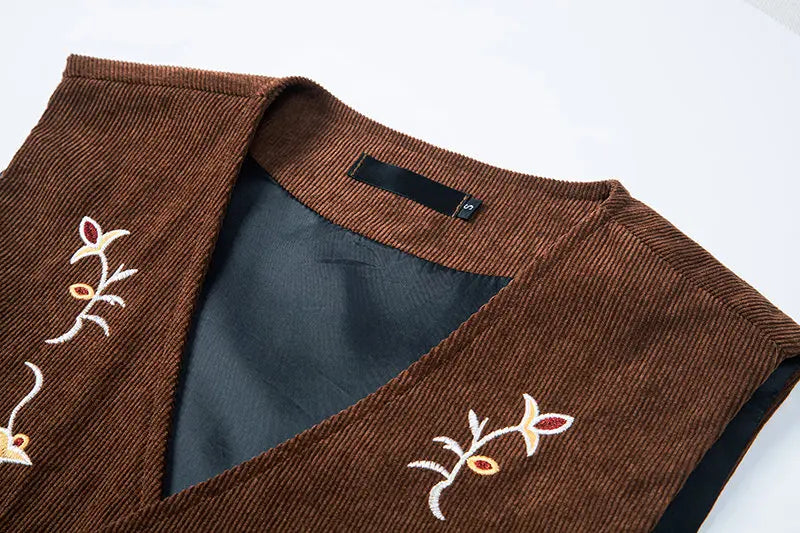 Steampunk Brun Herrevest med Blomstret Broderi XXL