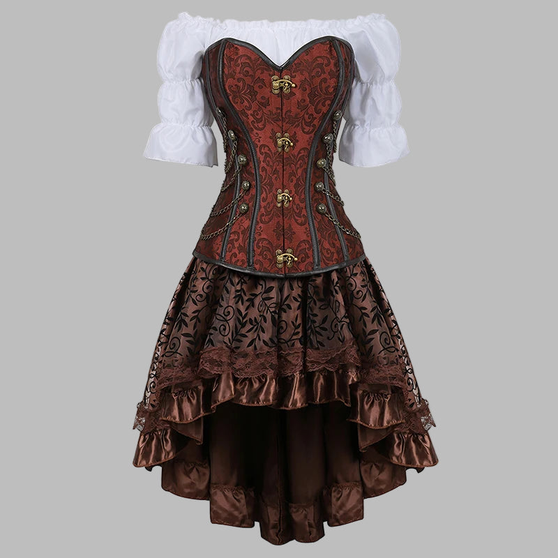 Steampunk-kjole med rød korset og flæseskørt Se muligheder