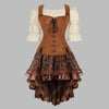 Steampunk Kjole med Snøring og Asymmetrisk Nederdel Brun